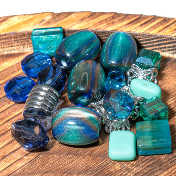 Dive into the deep blue with this stunning blend of dark blues and green color. Each mix features four stunning resin immitation stone beads, perfect for adding the stunning sparkle of gemstones without adding the weight! Making them perfect for earrings or lightweight jewelry. These stunning showstoppers are accompanied by faceted glass, silver metal beads, silver metal spacers, and immitation stone squares. Largest piece in mix measures 14mm x 12mm. Smallest bead measures 8mm x 2mm.