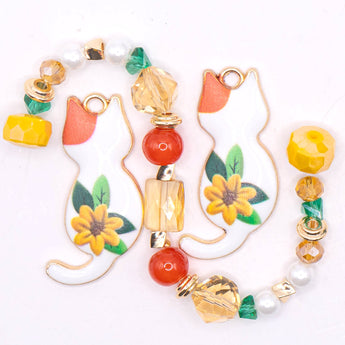 Absorb the sunshine with this beautiful sunflower and cat-inspired bead mix featuring bright yellows, oranges, and a touch of red. This mix features adorable enamel and metal charms paired with faceted glass and bright metal bead spacers. Cat charms measure 30mm x 15mm x 2mm with a 2mm inner bail size. Smallest bead in mix measures 4mm. **Restock Preorder will ship week of 8/4**