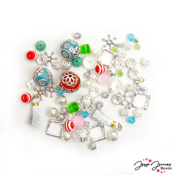 Silver tinsel and colorful holiday lights is the inspiration for this stunning Design Elements Bead Mix. Each mix contains custom bohos, caged crystals, bright metals in silver, crystal spacers, faced glass, tassels and more. Largest bead in the mix measures 15mm x 16mm. Smallest bead in the mix measures 3mm x 4mm. All Winter Workshop items start shipping November 16th, 2022.