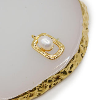 Elevate your jewelry with these exquisite brass pendants, featuring a lustrous oval freshwater pearl set within a sleek rectangle charm. Plated with real 18K gold, they exude a refined, luxurious charm perfect for adding a touch of elegance to any design. With a delicate yet bold presence, these pendants are ideal for creating timeless pieces that radiate sophistication and grace. Measures 12mm wide, 19.5mm long, 6mm thick, hole: 1.3mm.