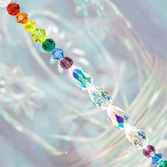 This 7-inch bead strand features a rainbow of stunning Preciosa glass beads in a rainbow of color. Perfect for creating stunning sparkle for necklaces, bracelets, and more beaded creations. Each strand features sparkling AB crystal faceted Preciosa teardrops and a rainbow of Preciosa 4mm bicones. Largest bead on the strand measures 14mm x 9mm. Smallest bead in the strand measures 6mm x 4mm.