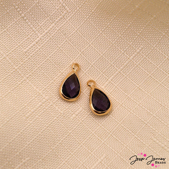 These beautiful mini charms are the perfect gift for February birthdays! Each glass charm features a dark Amethyst color. These adorable 7mm x 10mm charms are perfect for earrings, bracelets, and more. 2 per set.