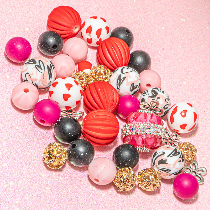 Fall head over heels for our Love Struck Silicone Bead Mix, a playful assortment of 29 pieces perfect for DIY jewelry projects. This mix includes patterned and solid silicone beads, boho-style accents, and silver and gold metal bead caps and spacers—everything you need to create fun, colorful, love-inspired designs.