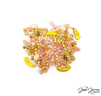 Whether you want to channel the regal splendor of Marie Antoinette or embody the artistic spirit of Michelangelo, this romantic blend of rich creams and gold is your go-to blend. Each mix features creamy pearls, bright gold-plated metals, rhinestone sparkle, and faceted glass in a blend of romantic pinks and creams. Smallest bead in mini mix measures approx. 4mm.