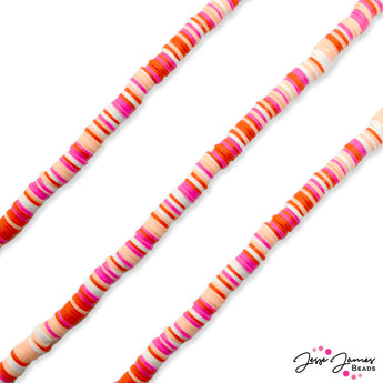 Ready for a party? These bold 8mm heishi beads feature a range of pinks. JJB's favorite color, these bold heishi are sold in a 14 inch strand, perfect for creating bracelets, necklaces, earrings, and more.