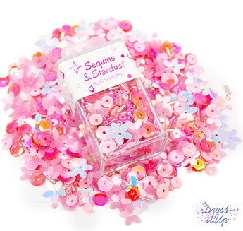 This blend of light and feminine pink hues adds a playful tone to any crafting project. Add to embroidery, felt, papercrafts, and room decor. Each mix includes round sequins, flower sequins, seed beads, bugle beads, and more.