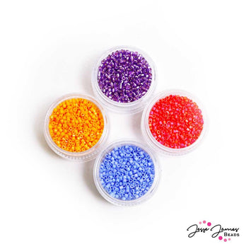 Unearth these beautiful beads in stunning gemstone shades. This Pantone classic adds a unique twist to jewelry, sewing, embroidery, netting, and more. Each pack includes a total of 20 grams of beads, 5 grams per color, and comes in a high-quality reusable plastic container. Perfect for future bead storage. Each bead measures TOHO 11/0 or 2mm.