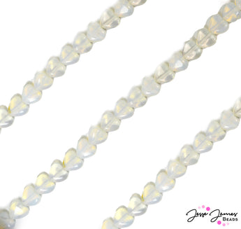 Add a milky-white touch to any jewelry piece with these opaque milky heart beads. These beads are a great neutral element to any design project. These moonstone heart beads measure 9mm x 11mm x 5mm. Each strand includes approx. 38 pieces.