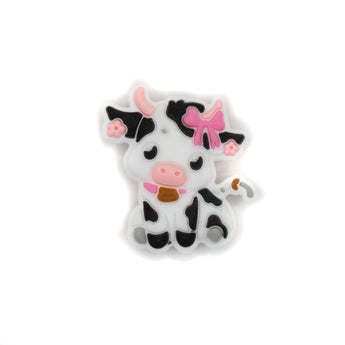 Add a touch of farmyard charm to your creations with this adorable black and white cow silicone bead, featuring a sweet little pink bow. Perfect for keychains, beadable pens, or playful jewelry designs that need a dose of cuteness! Bead measures 27.5x26x9mm, Hole: 2mm.