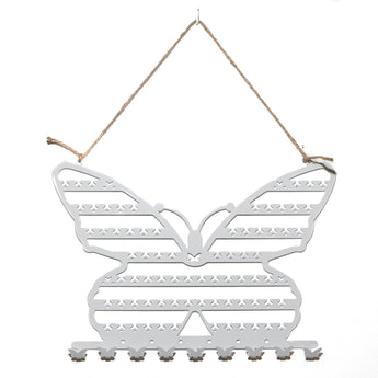 Showcase your earrings beautifully with this Silver Butterfly Metal Hang Earring Display Rack. Measuring 30x21cm, this elegant stand features a butterfly design that adds a whimsical touch to any display. Made from durable metal, it provides a sturdy and stylish way to hang and organize a variety of earrings. Perfect for home use, boutiques, or craft shows, this display combines functionality with decorative charm, keeping your jewelry collection neat, accessible, and visually appealing.