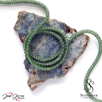 Earthy and playful. This bright green SilverSilk cord is perfect for creating nature inspired designs. SilverSilk Capture Chain is made by knitting six 36-gauge, permanently enameled, non-tarnish wires over a 2mm ball chain to create a 3mm knitted wire cord. The ball chain provides structure, while the knitted wire adds beauty and intricacy. Our single-, double- or triple-strand custom-designed end caps provide a polished finish to the ends of this knitted wire. Quantity of 1 = 3 feet of chain. Chain is pre-cut at 3 foot lengths.