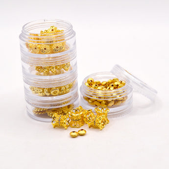 Dive into luxurious 18K gold with these stunning, high-quality plated brass and alloy spacers. Each piece features a sturdy, bright 18K Gold plating that's been water tested for 12 continuous hours of water submersion to ensure strong and long-lasting color and sparkle. Perfect for creating long-lasting jewelry with high-quality shine! Spacers are a mix of alloy and brass materials.