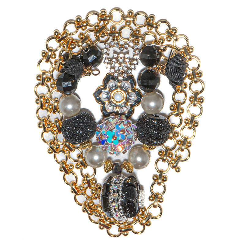 This stunning blend of black and white beads features touches of AB sparkle, perfect for creating elegant and eye-catching jewelry designs. Each mix includes a blend of glass pearls, faceted glass, boho beads, sequin ball beads, focal charms, and an 18-inch cut of gold-plated brass chain. Approx. 16 pieces per mix plus chain and spacers. Largest piece measures 20mm x 18mm. Smallest piece measures 4mm x 2mm.