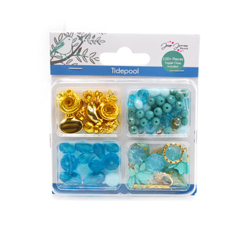 Let us teal you about these bright beads: This playful splash of teal is perfectly paired with bright gold spacers and clasps. Budget-friendly beads are perfect for building your bead stash. This bead mix combines glass, acrylic, and more to create wallet-friendly jewelry pieces. Includes toggle clasps. 100+ pieces per window box!