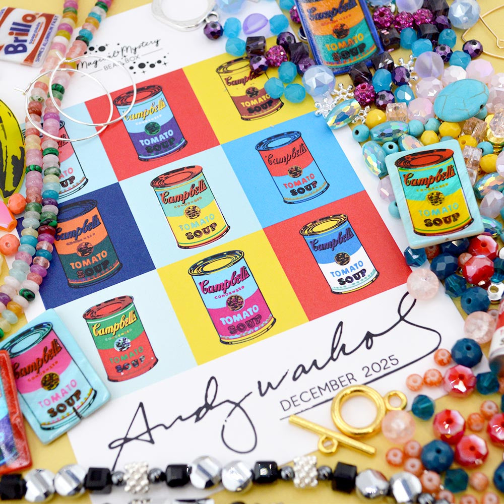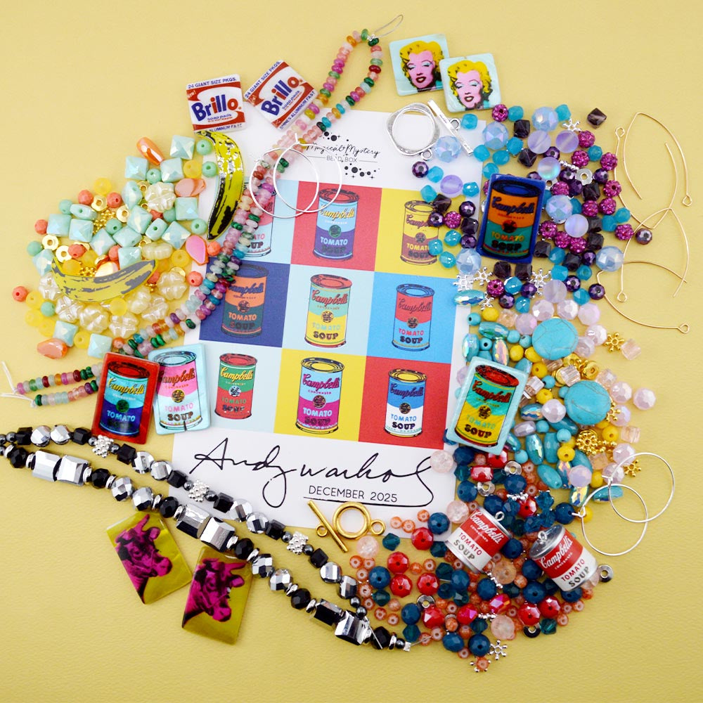 Add a POP of color to your next project with this Andy Warhol-themed magical mystery bead box. Each bead and component in this box is inspired by the work of Andy Warhol. Each box contains: