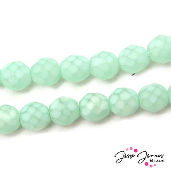 Beautifully textured opaque aqua beads are perfect for adding a bright dash of color to your next bead project. These Czech glass beads come in sets of 50 beads.