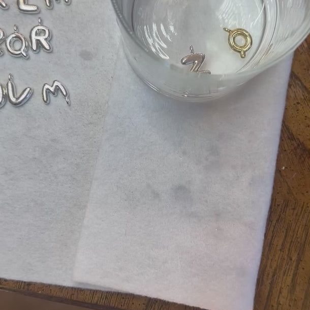 Customize everything with these playful bubble letter jewelry charms. Spell out names or create initial jewelry. Balloon letter charms are super trendy and come in gold and silver color. Tarnish resistant! Can be worn in water.