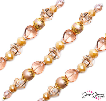 This beach-y pink is the perfect tone to lighten up any design project. This seven inch bead strand features custom acrylic, faceted glass, custom JJB metals, and more.