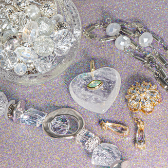 Leave a little sparkle wherever you go with this stunning sparkle-filled bead bundle. Each bundle includes a set of adorable charms including stone agate heart charms, crystal mini bead mix, crystal 7-inch bead strand, and silver and crystal chain reaction. Perfect for jewelry making, this bundle is a must-have for your bead stash.