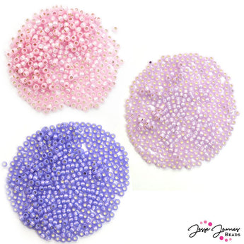 Crystalized crushed violet inspired by the spring violets. Each tier contains 5 grams of seed beads for 15 grams total per pack. This mix features a tier of pink, a tier of light lilac, and a tier of rich violet. Seeds are Toho 11/0 size or 2.1 mm.
