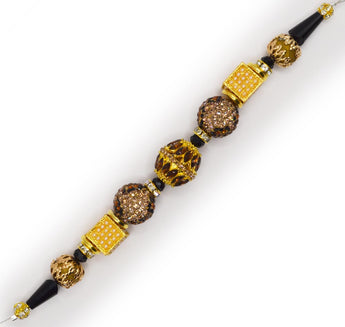 This designer strand features a curated selection of glass beads, metal spacers, and more. Perfect for creating layered designs, it offers a rich, textured combination ideal for necklaces, bracelets, or earrings. The warm tones and elegant details bring sophistication and depth to any jewelry project, making it a versatile addition to your collection. 7 inch bead strand. Largest bead on strand measures 18mm x 16mm. Smallest bead on strand measures 6mm.