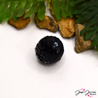 Make a bold statement with this large sequin bead, featuring a sleek black scale-like pattern that shimmers with every movement. Its eye-catching design adds depth and drama to any jewelry piece, making it perfect for necklaces, earrings, or focal pendants. Ideal for creating striking, nature-inspired designs with a touch of elegance and mystery. Each bead measures 27mm.