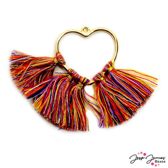 Show your love with a playful twist. This metal heart pendant features multi-colored tassels decorating the rim, perfect for adding a playful dash of color to any design project. Pendant measures 49.5 mm x 29.6 mm x 2.1 mm