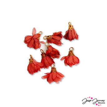 Deck the halls with these festive red tassels! Each set features 8 floral tassels in scarlet and gold. Tassels measure 16mm x 14mm. All Winter Workshop items start shipping November 16th, 2022.