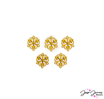 Fall in love with this elevated abstract Pansy gold-plated metal components. Each component measures 16.5mm x 16mm x 0.5mm. Each set includes five pieces.