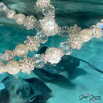 Dive into a world of elegance and mystique as you adorn your next jewelry design with these exquisite beads. Whether you're adding a touch of oceanic charm or seeking to evoke the tranquility of a moonlit seascape, our Lion's Mane Jelly Bead Strand is the perfect addition to your beading stash. This strand features custom bohos, sparkling silver spacers, and high quality coated glass beads. 7 inch strand. Largest bead on strand measures 20mm. Smallest bead on strand measures 6mm. Strands are sold individually. Quantity of 1 = 1 bead strand.