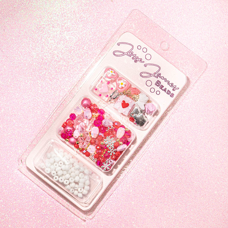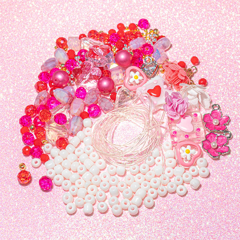 Perfect for Galentine’s or Valentine’s Day, this kit is ideal for the young jewelry maker in your life and includes a curated mix of glass beads, ceramic beads, seed beads, and stretch cord to create a stack of 3 beautiful stretch bracelets. Stretch cord included!