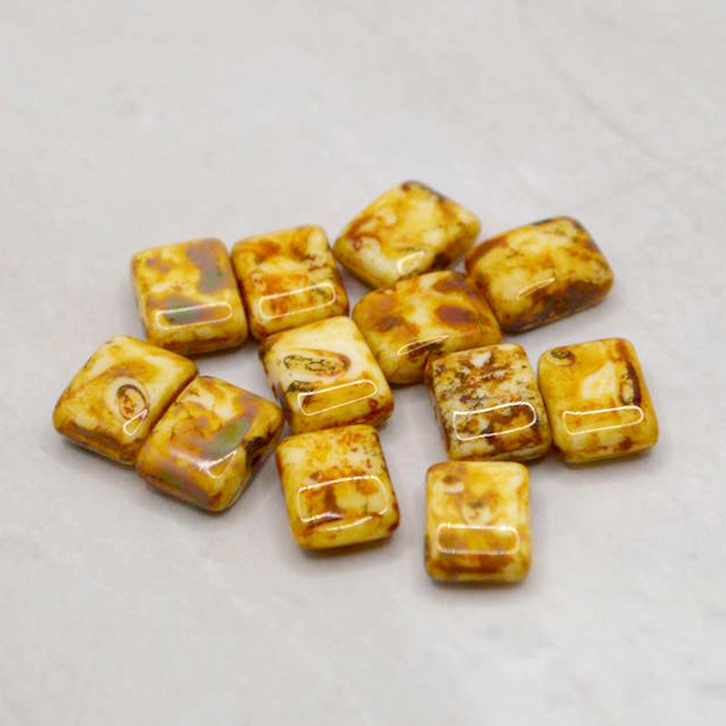 Beads By The Dozen Glass Tile Beads in Caramel Crunch