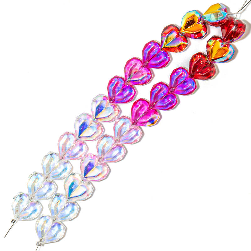Sparkle with every creation using this Electro Heart Duo Bead Strand, featuring four vibrant heart colors with a dazzling electroplated finish. Each set includes six beads of each color, perfect for making colorful, eye-catching jewelry that pops with love and shine. 24 beads per set. Beads measure 15mm.
