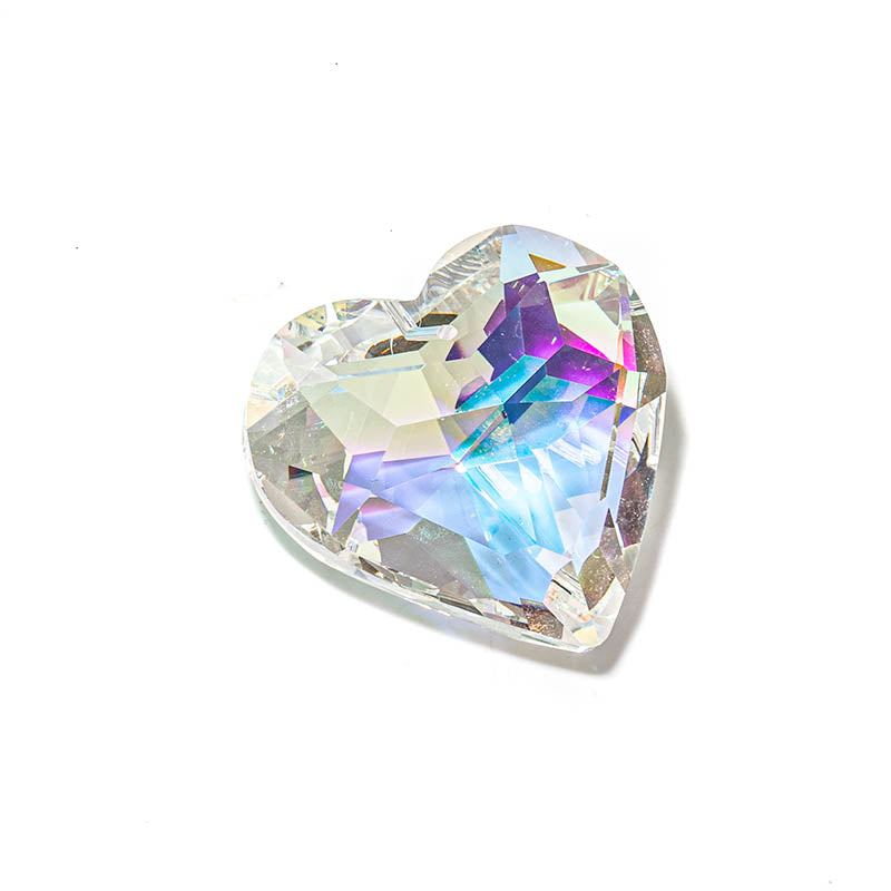 Sparkle and shine with this K9 glass faceted heart pendant in crystal AB, perfect for DIY suncatchers. Measuring approximately 44×45.5×27.5mm with a 1.4mm hole, it catches the light beautifully to create a dazzling display of color and brilliance. 1 per order.