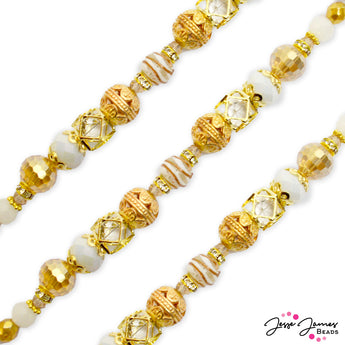 She is the most glamorous strand at the shore. Bright gold metal and luscious cream glass are sure to make your next design stand out.