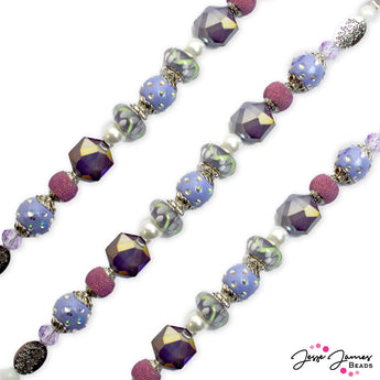 Shake off winter blues with this floral-inspired bead strand. Muted purples and pink beads give this strand a refreshing Spring feel. 7-inch strand. Largest bead on strand measures 14mm x 14mm x 8.5mm. Smallest bead measures 6mm.