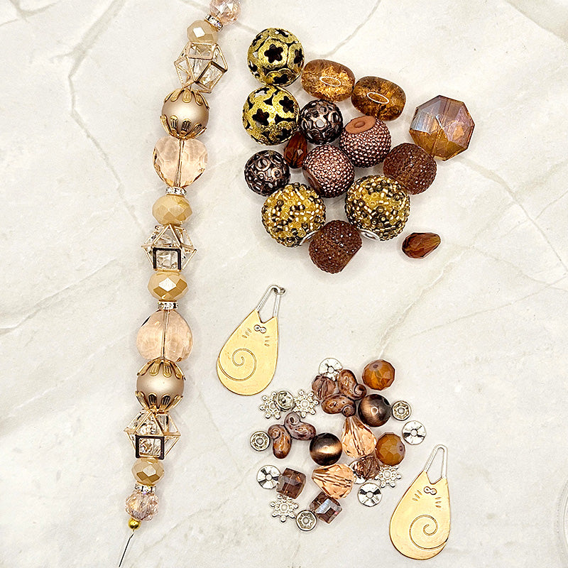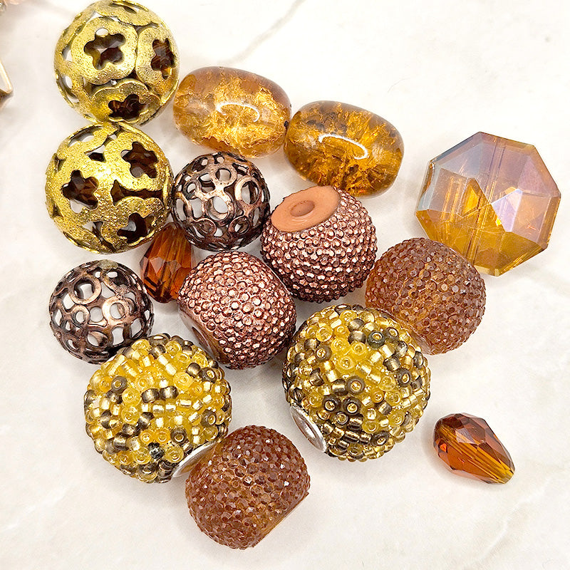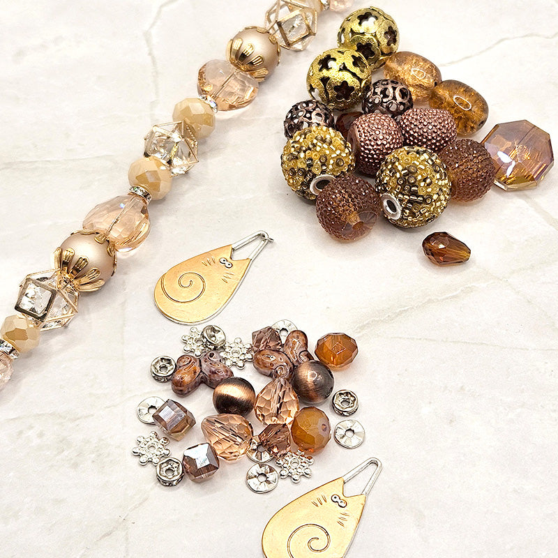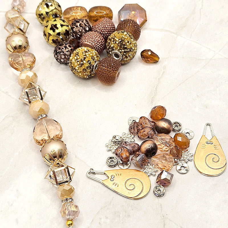 Ready to get cozy with some kitty cats? This adorable cat-themed bead bundle features a rich blend of browns, tans, copper, and gold tones. Each bundle includes a beautiful tan glass strand, large bead assortment featuring antique gold-metal beads, faceted glass, boho beads, and fancy acrylic, and a mini bead mix featuring adorable metal cat charms, pressed glass, and high-quality metal spacers. This bundle of beads is purr-fect for creating stunning jewelry for the cat lover in your life. Largest piece in mix measures 34mm x 17mm x 1.75mm. Smallest piece measures 4mm x 2mm.