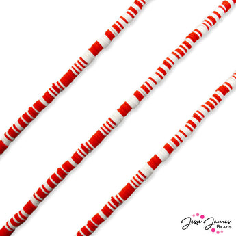 Ready to add a (peppermint) twist to your next jewelry project? This minty combo of red and white is perfect for bold holiday creations. 6mm heishi beads Beads are sold on a 14 inch bead strand.