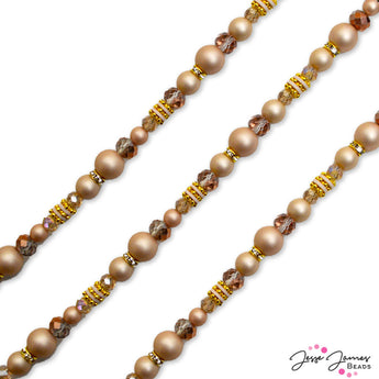 This creamy autumnal hue is the perfect neutral to add to your sweater weather jewelry. The 2022 Pantone Pearls Collection from Jesse James Beads includes custom dyed pearl beads with matching faceted glass, custom dyed heishis, and metal spacers. Largest bead on strand measures 10mm. Smallest bead on strand measures 6mm x 1mm. Please note, some pearls may have a speckled look due to custom dying. Style may vary slightly.