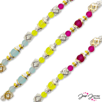 All we want for Christmas is vibrant neon! This 10 inch bead strand features a variety of bright color glass beads and sparkling metals. Largest bead on the strand measures 11mm x 8mm. Smallest bead on the strand measures 6mm x 2mm. All Winter Workshop items start shipping November 16th, 2022.