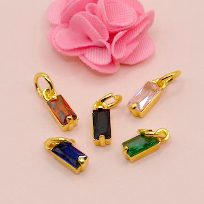 Micro Pave Mini Rectangle Faceted Glass Birthstone Charms