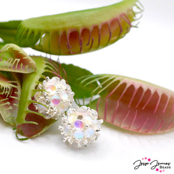 These beautiful clay boho beads feature a white color clay base adorned with beautiful glass AB finished accents. Beads measure 18mm. 2 bead per set.