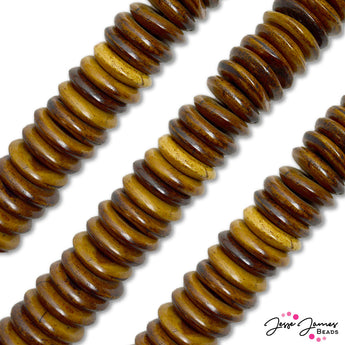 Add some rustic charm to your next design project. These chunky spacers are made with natural wood and stained for a beautiful finish. Measure approximately 20mm X 4.7mm. 37 beads per set.