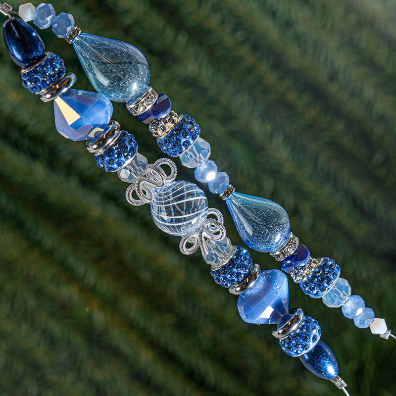 Holiday Lampwork Bead Strand Duo in Blue Christmas