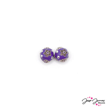 Endulge in a rich berry flavor of this dark purple boho bead pair. These beads are 14mm size with 1.5mm hole size. These small boho beads are a universal size, perfect for earrings, necklaces, and more. Boho beads are clay beads accenting with metal accents.