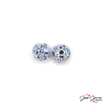 Create a flaky and smooth boho bead with this blue colored boho bead pair. These boho beads add texture, encrusted with small seed beads for unique flaky texture. These beads measure 16mm with a 3mm hole size.