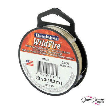 Wildfire Beading Thread features the strength and durability of DandyLine, with a smooth, thermally bonded coating, to create a superior stringing product ideal for seed bead designs. 0.006 inch, 0.15mm thick thread. 20 yds per spool. Wildfire, .006 in (0.15 mm), Break Strength 10 lb (4.5 kg), Beige, 20 yd (18.3 m)