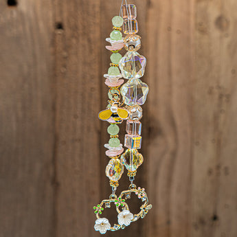 This bitty duo of 4-inch bead strands features a floral-themed color palette adorned with adorable bee charms. The largest piece on the strands measures 19.5mm x 18mm x 5.5mm. Smallest bead measures 6mm.