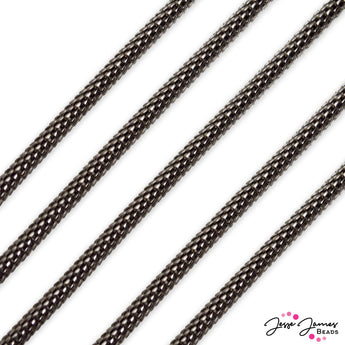 This 3mm knitted gunmetal chain is perfect for creating Ren Faire style jewelry. Sold in 1 meter increments