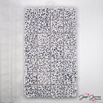 Add a word of encouragement or personalize your next jewelry creation with this bulk box of letter beads! This box contains all 26 letters of the alphabet plus adorable heart and smiley face beads to add an extra touch. Each bead measures 7mm x 7mm x 3mm. 2mm hole size.